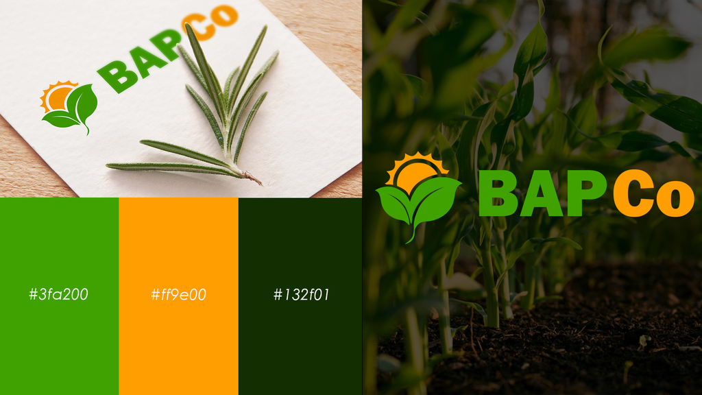 The vibrant green represents lush fields, while the warm yellow evokes sunlight, symbolizing nourishment and hope. Together, these elements create a dynamic and inviting representation of BAP Co’s mission and values.